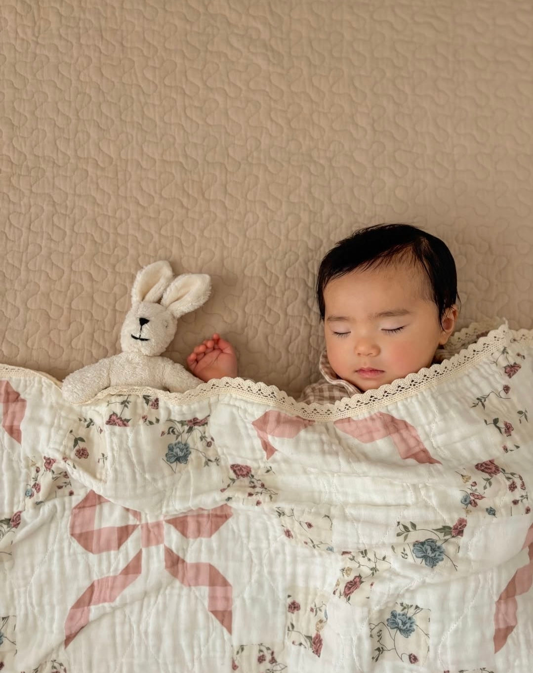 Bows and Florals Patchwork QUILTED 6 Layer Gauze Blanket