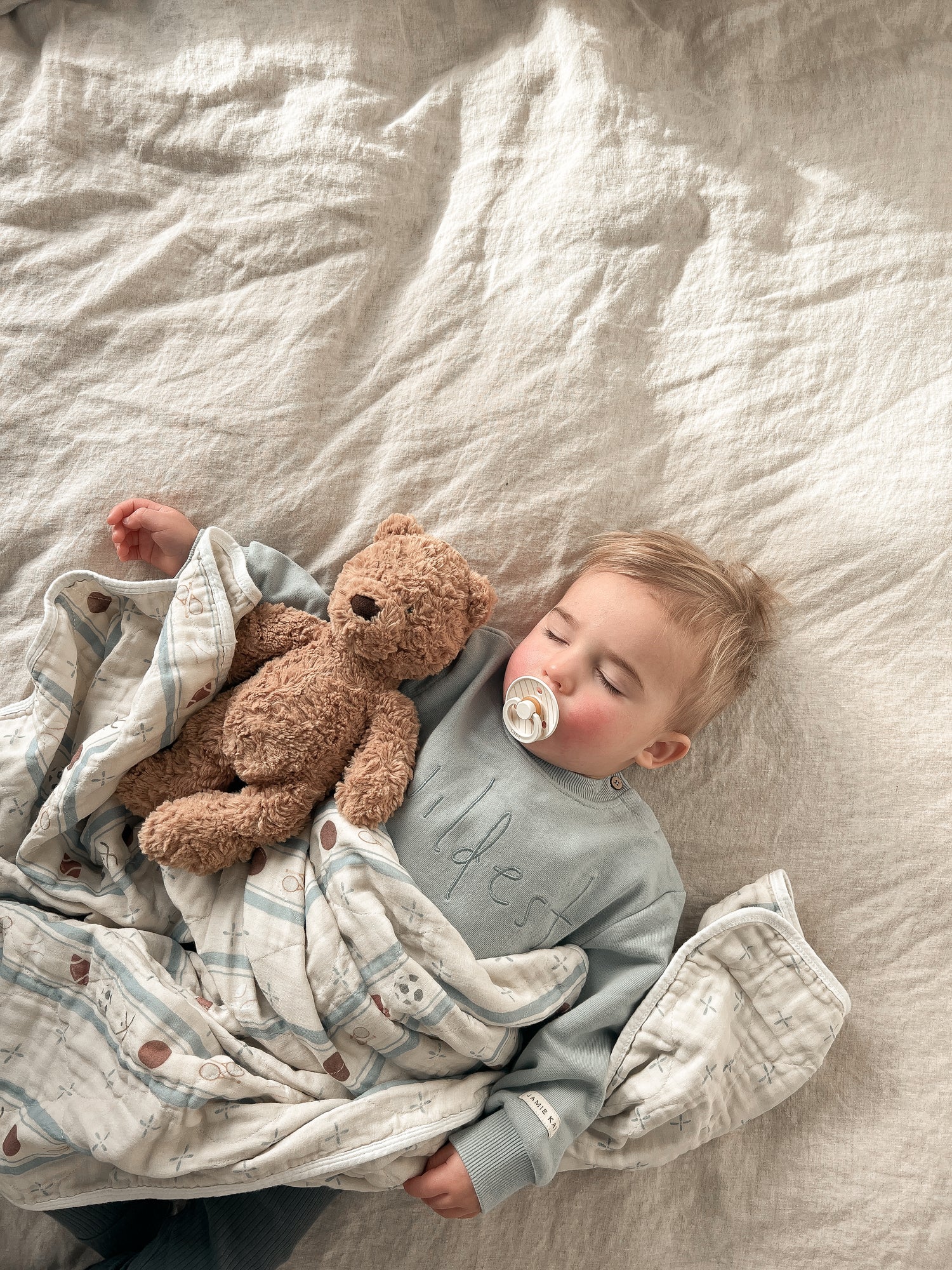 DISCLAIMER: Never leave your child unattended with blankets because of risk of suffocation. Keep blanket away from velcro and sharp objects that can snag the delicate gauze material. We are not responsible for damages to the fabric.